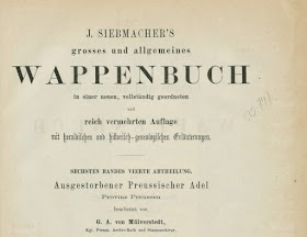 First look at this interesting book, J. Siebmacher's Wappenbuch. Ausgestorbener Preussischer Adel, Vienna 1878: