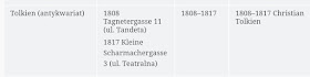 Today I have analyzed a very special publication from 1817. It is Adreß-Buch für das Königlische Danziger Regirungs-Depatement ('Gdańsk Addressbook 1817'). It is the source from which Gedanopedia took its information about Mr Christian Tolkien and his Buchhandlung-Antiquariat ('Second-hand Bookshop') at Klein Scharmachergaße 3 (today this street unfortunately does not exist; its name comes from the guild of wheelwrights) in Gdańsk. I have discovered that Herr Tolkien was also an official in the City Council who was responsible for street lighting in whole Lower Town. In the part of the Addressbook entitled "Deputationen von Raths und Staatsbürgerschaft für spezielle Management-Geschäftsbereiche" ('Deputations of the Council and Citizenship For Special Management of Business Areas'). There Christian Tolkien is called Offiiciant bei der Straßen Erleuchtungs-Anstalt auf der Niederstadt or an 'Official for the Street Lighting in Lower Town'.